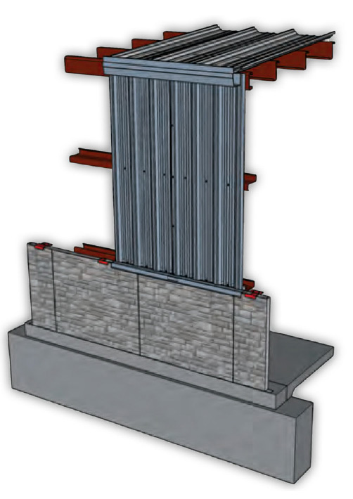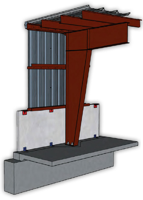 Our new patent pending panel system is a pre-cast concrete panel that rests on the building foundation and easily attaches to the building wall girt.