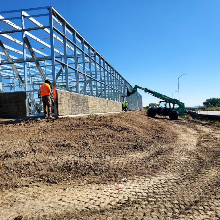 Our new patent pending panel system is a pre-cast concrete panel that rests on the building foundation and easily attaches to the building wall girt.